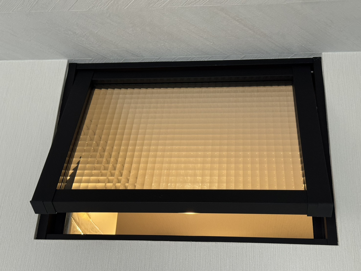 隣接する壁には明かり取りと風通しが出来る小窓を設置。