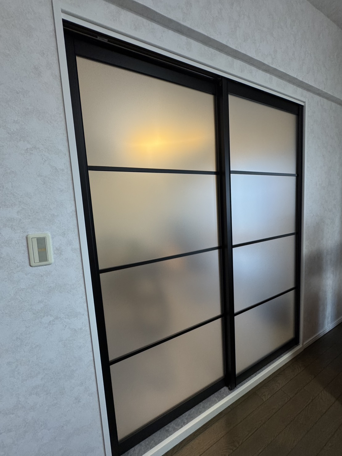 リビングとの境にあった襖を BLACK×すりガラスの建具へ。